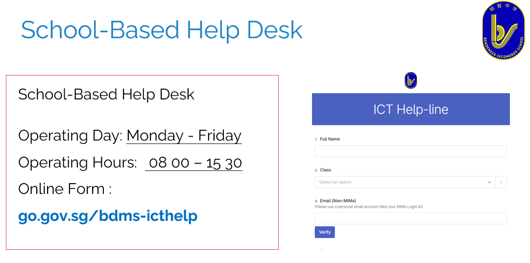 As part of our efforts to ensure minimum disruption to students’ learning, The ICT Department will provide technical support (including password reset) to students.